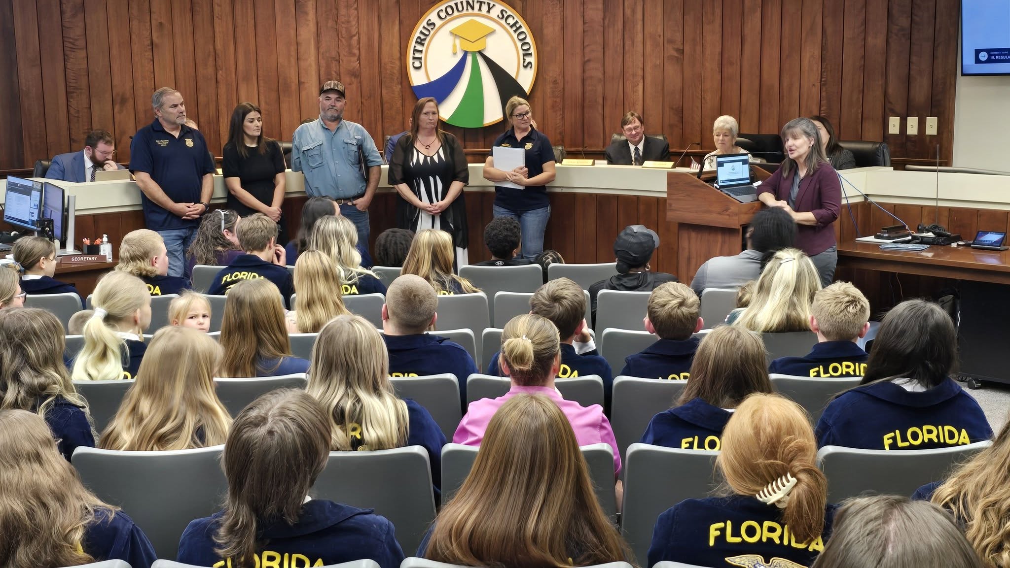 Tuesday night's School Board Meeting kicked off with a special spotlight on our incredible FFA programs across the district. Representing all of our middle and high school FFA programs, students an...